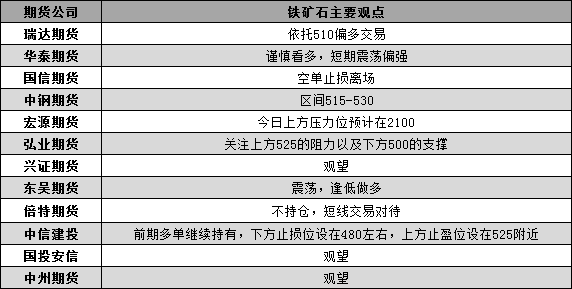 1月18日期货机构观点:铁矿(528, 16.00, 3.13%)石