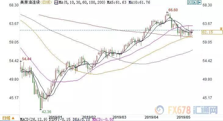 (上图为美国WTI 6月原油期货价格最近一年的日线蜡烛图,图上时间为美国东部时间;图片来源:汇通财经)