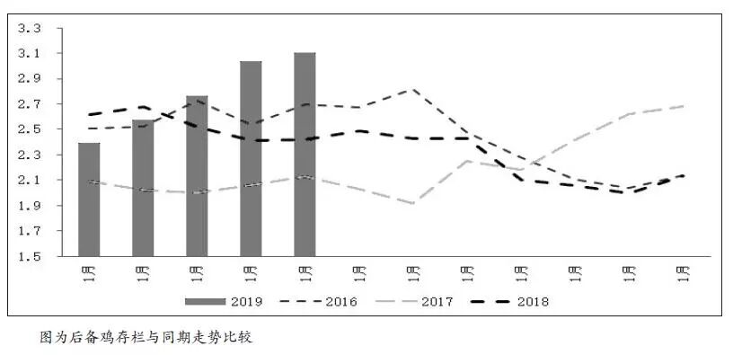 从调研情况看,养殖户多正常补栏,心态偏积极,前期虽然由于环保因素万只以下存栏的养殖户逐步退出市场,但规模化养殖场普遍存在扩栏或扩建行为,整体蛋鸡存栏同比小幅增加。市场3—5月鸡苗补栏数量较多,按照蛋鸡的生长周期,7月逐步开始产蛋,阶段性供给增加,但因为受传统7月、8月需求旺季及产蛋率影响,真正的供给压力会在9月后开始逐步体现。