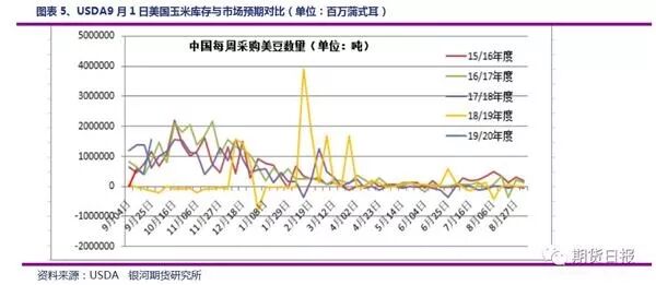 在今年受播种延迟影响导致美豆和玉米生长进度严重落后的情况下,市场一直预期作物亩产会下降。在USDA季度库存大幅下调陈豆和玉米库存情况下,新年度作物初始库存会相应大幅下调,由此也将使得新年度作物的产量显得更重要,这将影响新年度作物的供需格局。