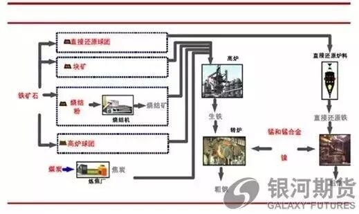 铁矿石主要用于钢铁工业,冶炼含碳量不同的生铁(含碳量一般在2%以上)和钢(含碳量一般在2%以下)。生铁通常按用途不同分为炼钢生铁、铸造生铁、合金生铁。钢按组成元素不同分为碳素钢、合金钢。合金钢是在碳素钢的基础上,为改善或获得某些性能而有意加入适量的一种或多种元素的钢,加入钢中的元素种类很多,主要有铬、锰、钒、钛、镍、钼、硅。