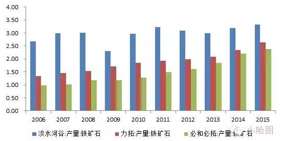 力拓(Rio-Tinto):全球第二、澳大利亚第一的铁矿企业,年产量2.5亿吨左右,而且一直处于增产的趋势。