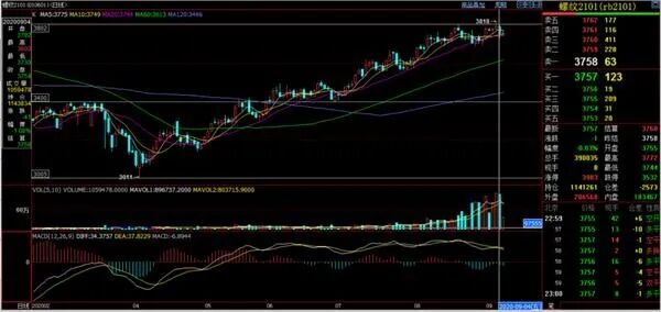 曾经的主力2010合约本周演绎了一颗波幅58点实体19点涨幅0.45%的周阳线,收盘3801点非常接近现货的价格,持仓继续减少了16万手之多,渐渐退出了历史舞台;新主力2101合约本周推演的是一颗波幅97点实体24点涨幅0.54%的周阳线,持仓增了8万手之多,高点3818点创了本合约的新高,但影线较长,你若持有多单不动,收益会缩水很多。但8月的月线收盘螺纹形成的是一颗实点体152点上下影相对较少的月度阳线,收盘3779点较前月涨了4.19%,还算给力。尤其9月开盘后在增仓增量中依然创了新高3818点,只是它的回落速度让多头有些许“懊恼”。